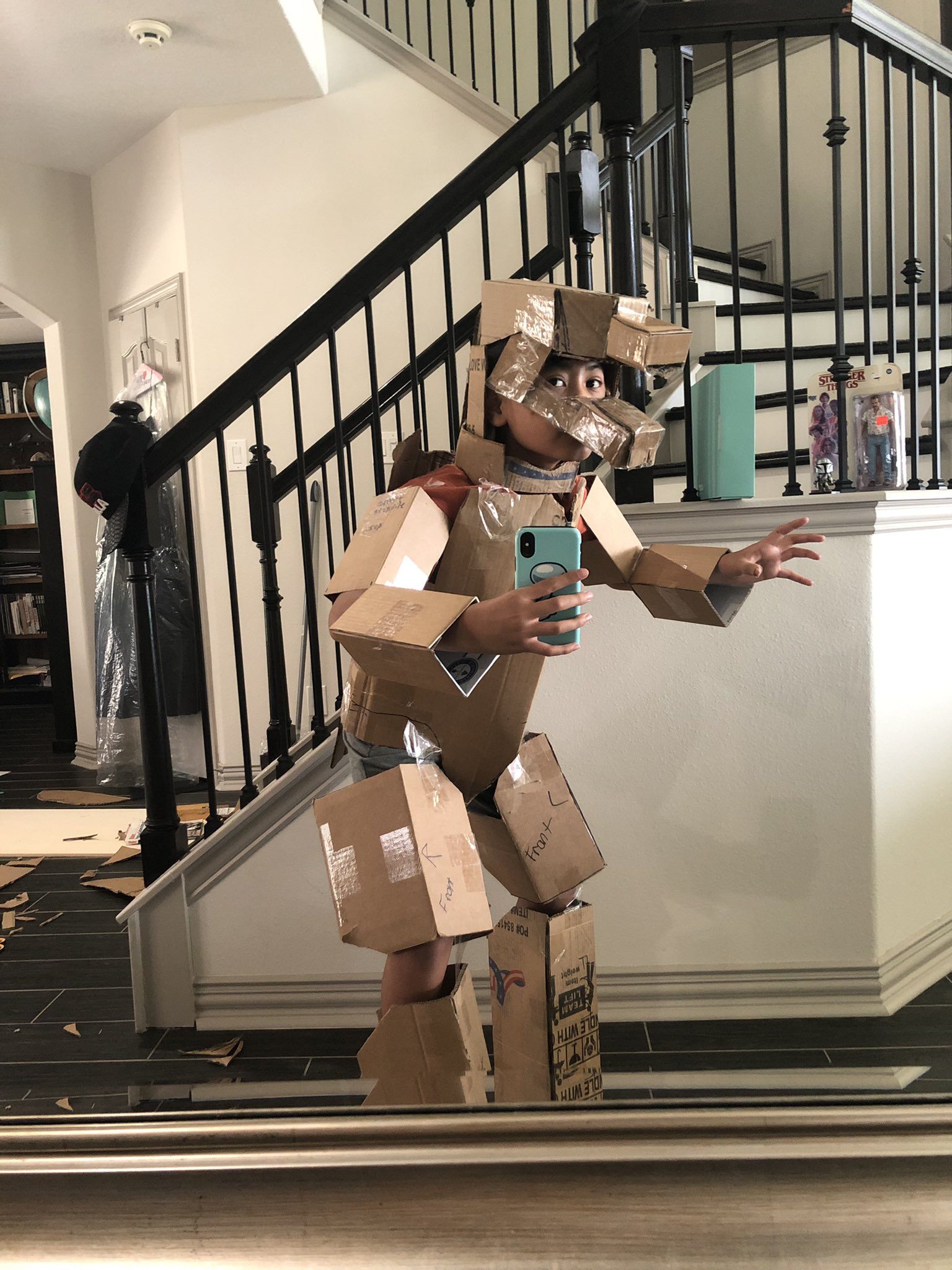Wearing my full cardboard mockup for GvK Mechagodzilla costume